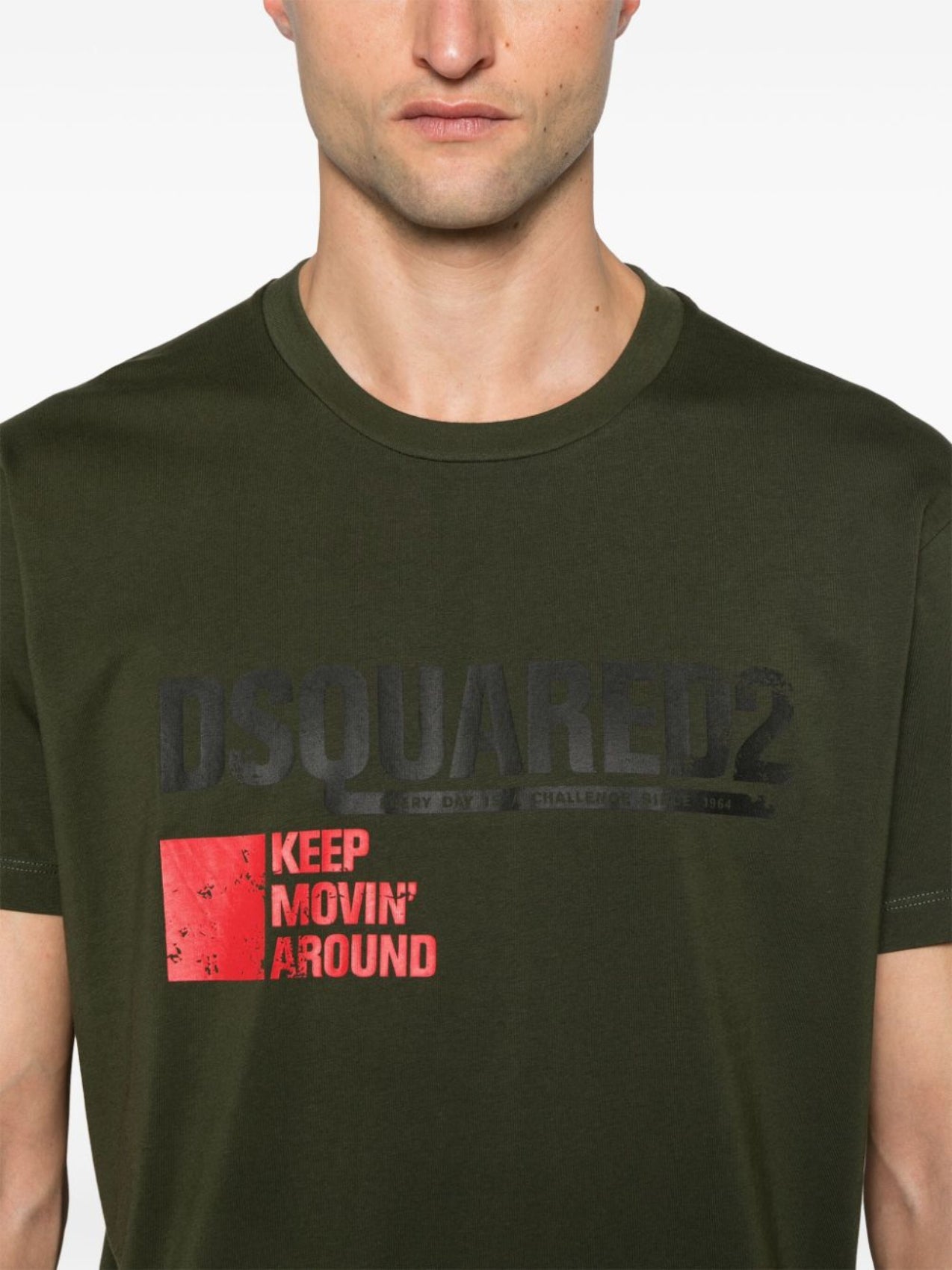 Esta camiseta de punto de algodón lleva la marca estampada. Su corte holgado sugiere un look relajado con un pantalón de chándal y unas zapatillas de deporte.
