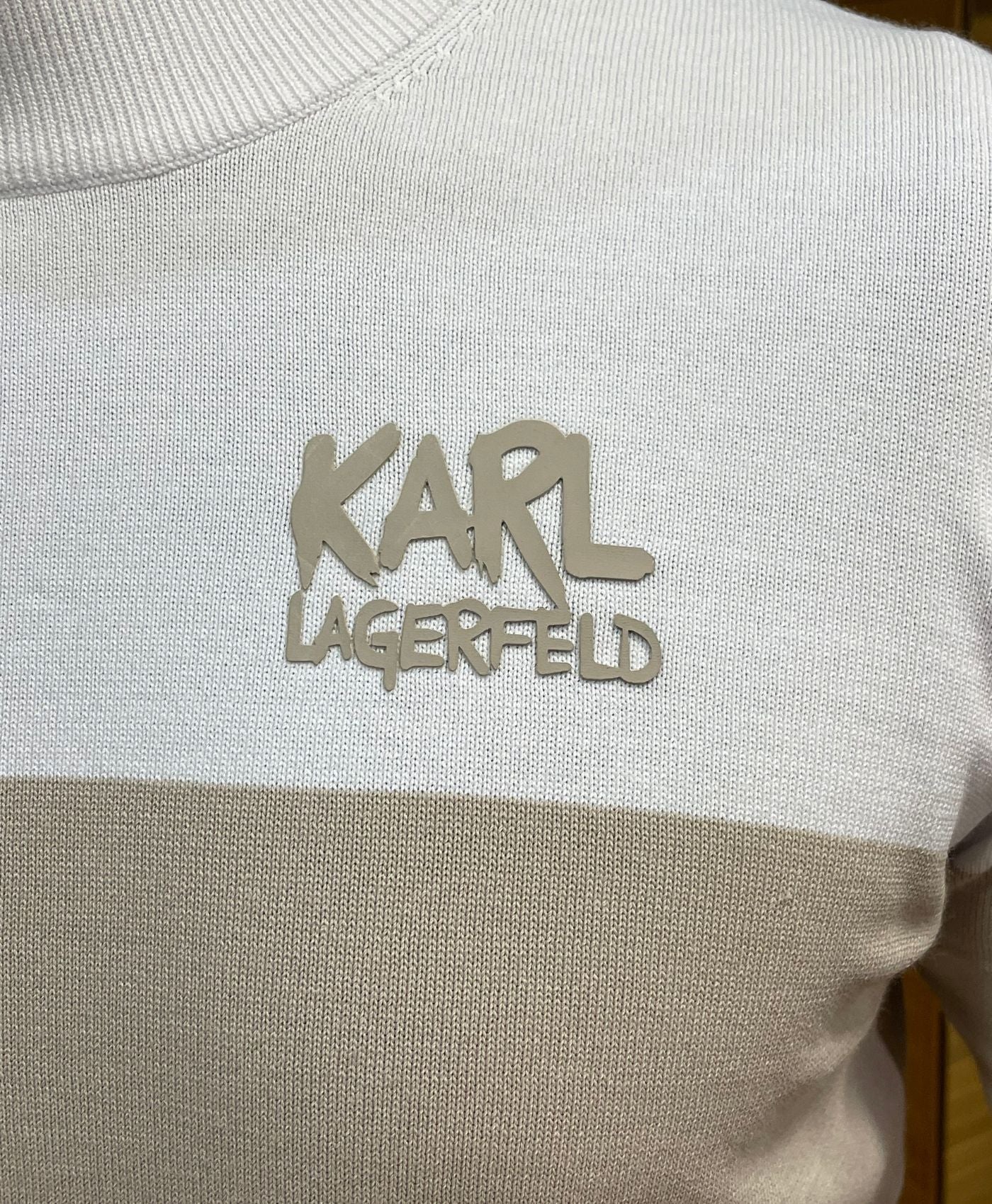 Jersey bicolor blanco y arena . 43% algodon , 36% viscosa, 21% polyamida.