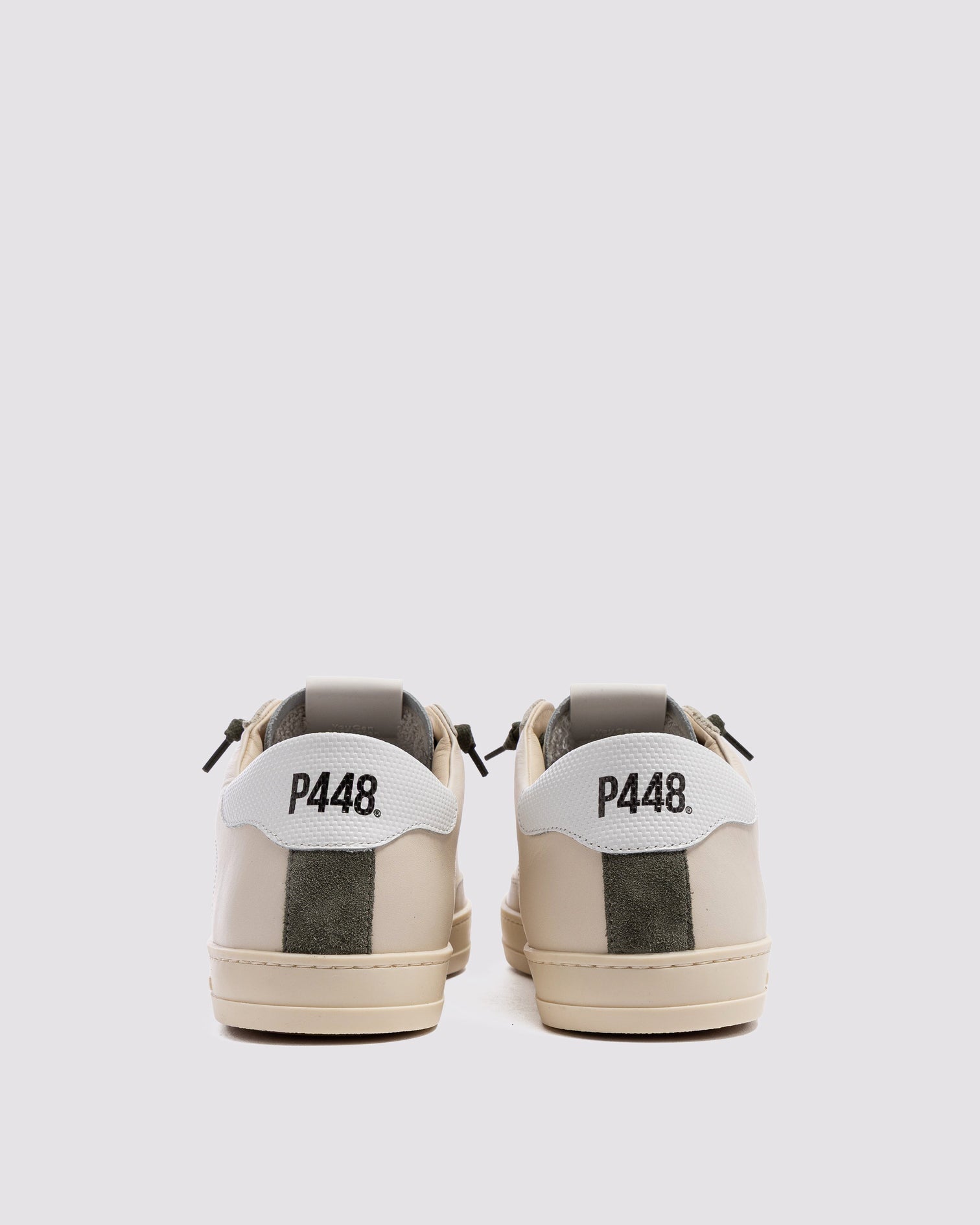 .Las John Block Cream están confeccionadas en piel beige y blanca con cordones de algodón verde. La suela de goma P448, con su dibujo característico, completa el diseño. Para un look más sencillo, puedes usar un par de cordones neutros adicionales.